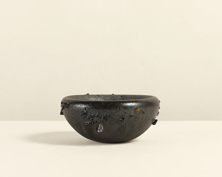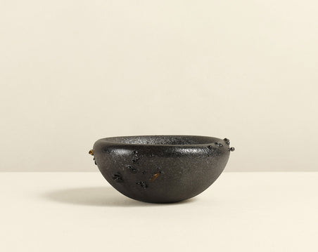 Rogan Gregory’s RG Studios hand-fired black Scavo glass bowls have the patina of age, as if unearthed instead of made. They retain carbonizations from the production process—rough, unyielding, textural—rich with irregularity and imperfection. Given their handmade nature, no two will be exactly the same. Available in three sizes.