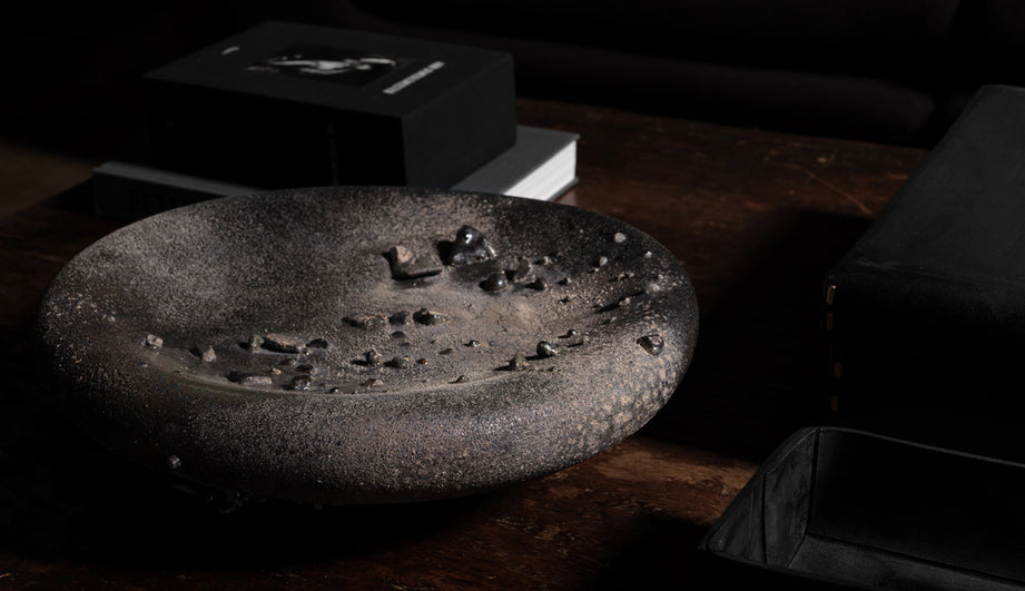 Rogan Gregory’s RG Studios hand-fired black Scavo glass bowls have the patina of age, as if unearthed instead of made. They retain carbonizations from the production process—rough, unyielding, textural—rich with irregularity and imperfection. Given their handmade nature, no two will be exactly the same. Available in three sizes.