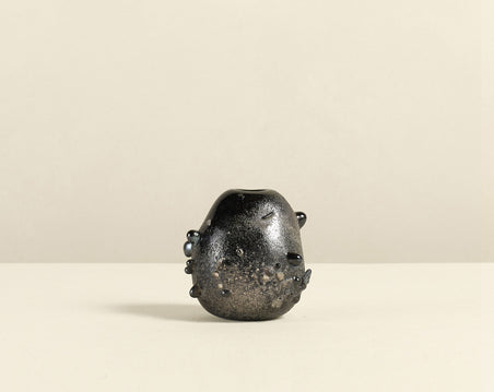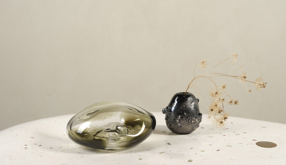 Crafted using the Scavo technique, each RG Studio glass vase by Rogan Gregory features a carbonized surface that mimics centuries of weathering—bringing age, texture, and elemental beauty to a contemporary form. Available in two finishes and two shapes, each vessel is handmade and one of a kind.