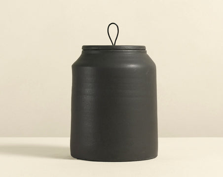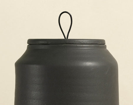 Using traditional techniques, San Francisco artist Sasinun Kladpetch arrives at a contemporary reinvention of form in these grand cylindrical canisters with leather cord loop handles that remain natural and precise, functional and special. Available in three sizes and two finishes.
