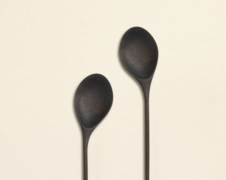 Hand-carved by Swedish wood artisan Daniel Wester from a 100-year-old fallen cherry tree, these serving and tapas spoons preserve the essence of fresh-cut wood through visible knife strokes and irregular lines. Available in two finishes.