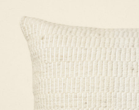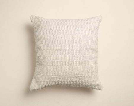 This series of pillows from Madda Studio incorporates wool from the indigenous Chiapa sheep, hand-spun on a pre-Hispanic drop spindle, and dyed by hand using local indigo and boxwood dyes. The square decorative pillows feature a weave pattern that highlights the irregularity of the wool, with a rich texture and natural luster.
