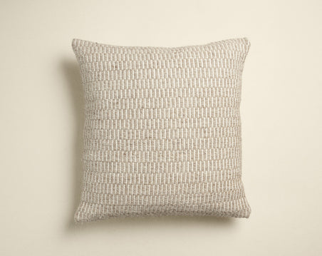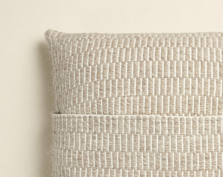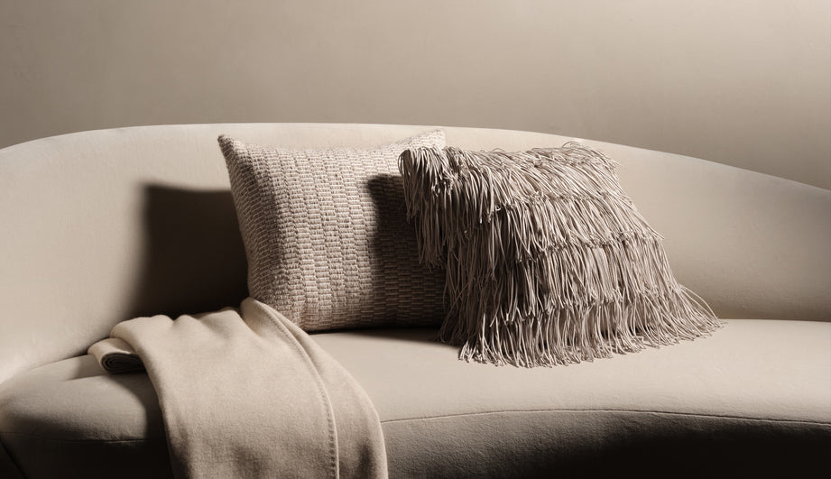 This series of pillows from Madda Studio incorporates wool from the indigenous Chiapa sheep, hand-spun on a pre-Hispanic drop spindle, and dyed by hand using local indigo and boxwood dyes. The square decorative pillows feature a weave pattern that highlights the irregularity of the wool, with a rich texture and natural luster.