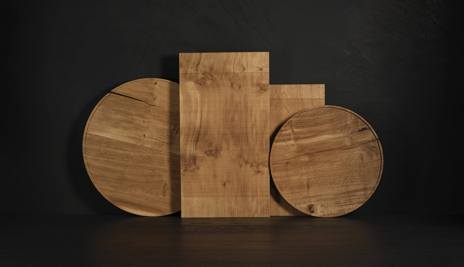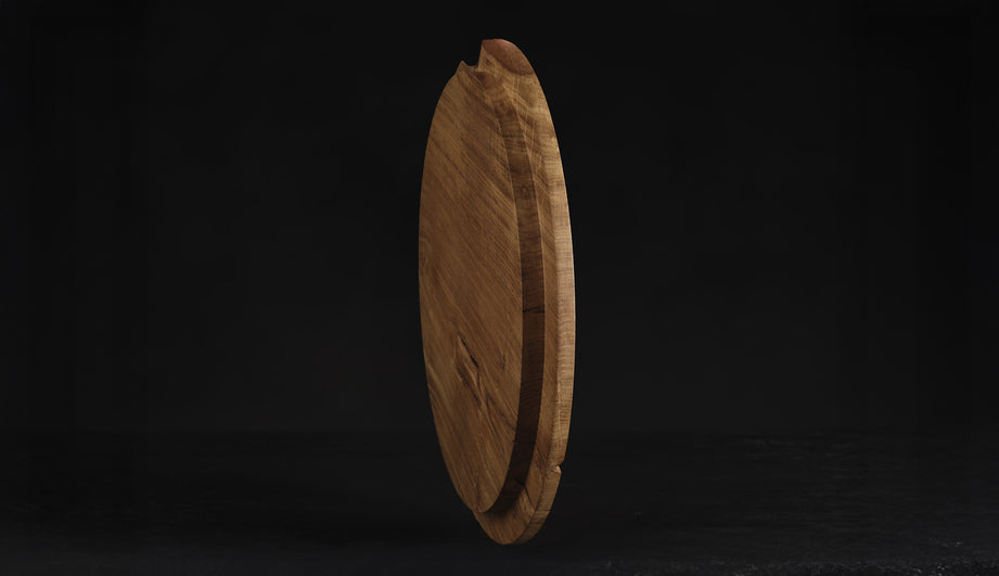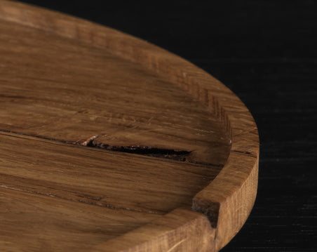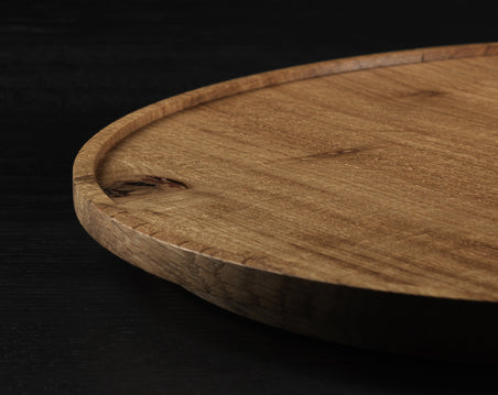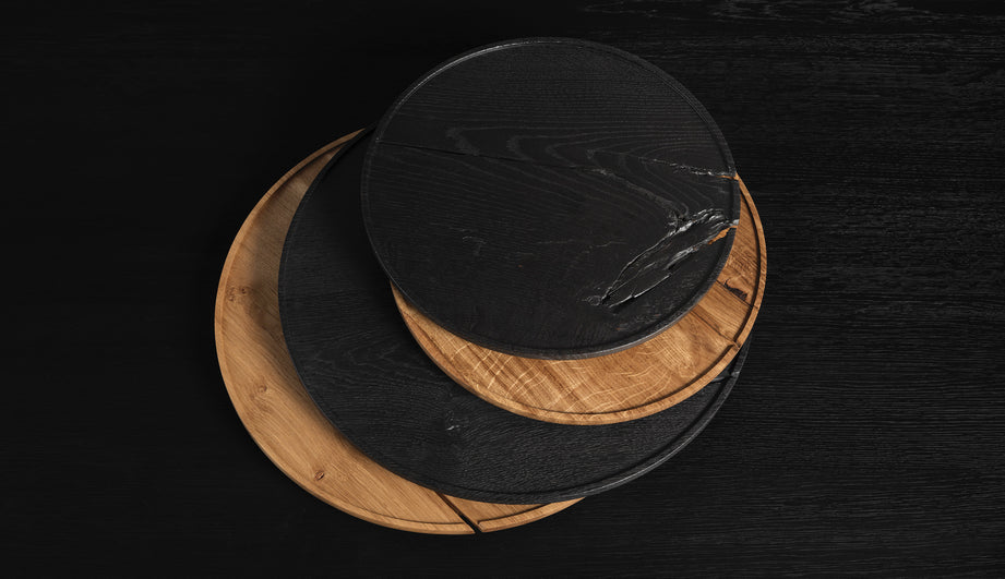 These decorative trays are made from sustainably sourced oak from English forests, oiled and burned by hand. Heat and friction create a burnished patina; a dramatically rugged finish that invokes the minimalist aesthetic of a tea service. Each piece of wood used by pachadesign is hand-selected; its cracks, markings, and grains placed thoughtfully to create a piece that is completely unique.