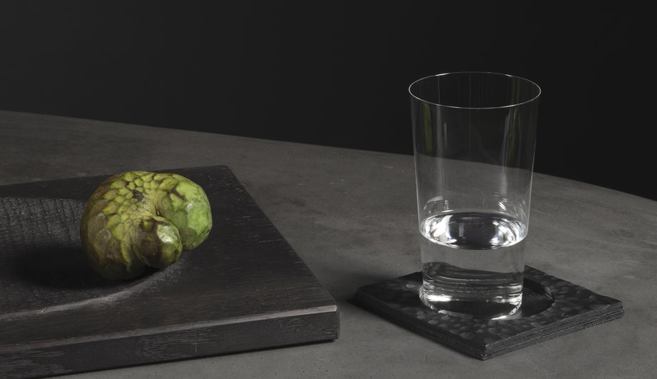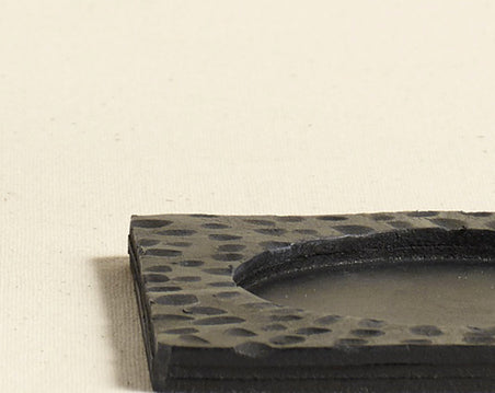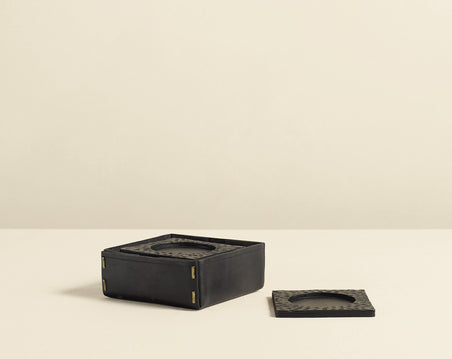 Materials meet purpose in these sleek, minimalist coasters by Peter Speliopoulos. Italian-sourced hammered leather cut by hand, debossed with a smooth circular niche perfectly sized for holding a glass. Timeless design seamlessly shapeshifts into any design language or tablescape.