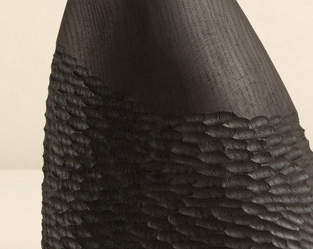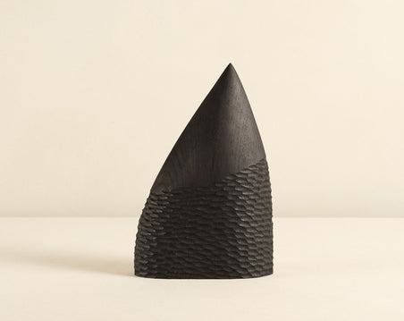 Carved and chiseled entirely by hand in French oak, this sculpture lives harmoniously with the Totem Oak Sculpture or stands proudly on its own. Maxime Perrolle makes each individual gauge of the wood by hand using traditional tools, paying tribute to past masters of woodworking. Available in two finishes.