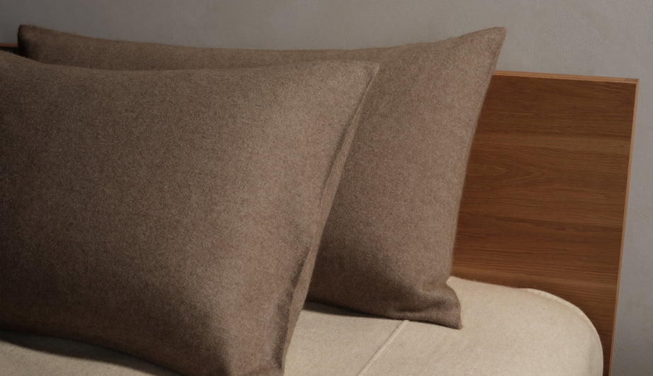 This mid-weight cashmere pillow sham elevates the nighttime ritual. Made of 100% Mongolian cashmere, hand-woven with an elegant tone-on-tone hem stitch that complements the Handstitched Cashmere Blanket. Available in two sizes and two colors.
