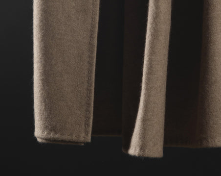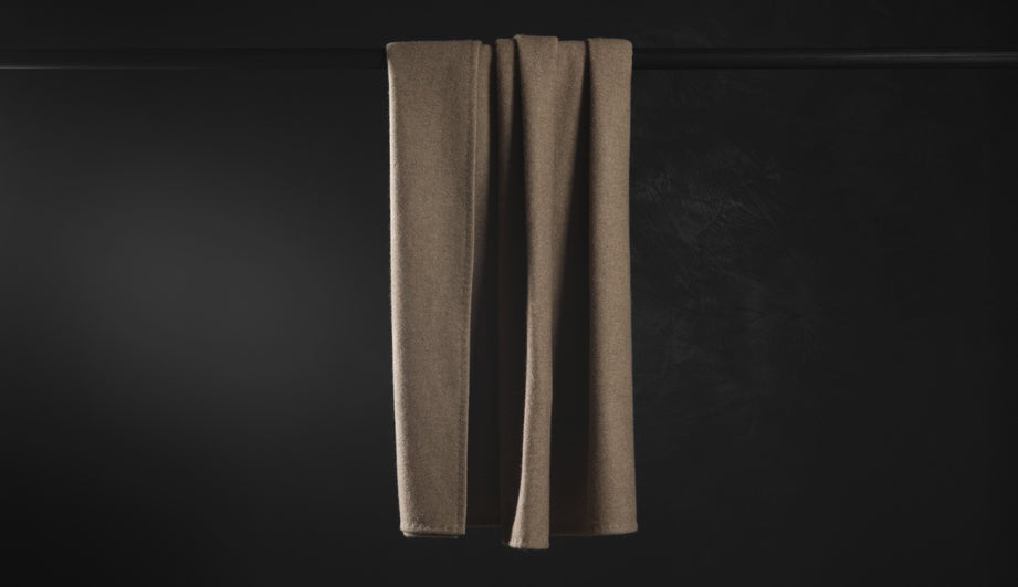 This heirloom-quality throw is woven from hand-combed 100% Mongolian cashmere, light in weight but full of warmth. With a tone-on-tone hem stitch, it is an understated classic, exceptional in both aesthetic and function. Available in three colors.