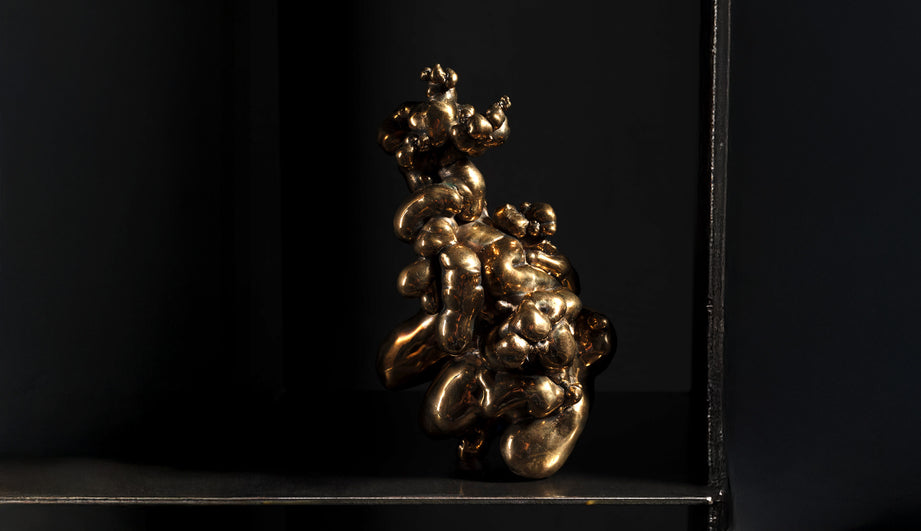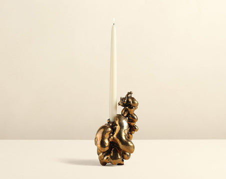 Inspired by ecological systems and evolution, the sinuous and organic shapes of Rogan Gregory’s “Igneous” series  reference the geologic processes that shape our earth. Each piece is rendered in nodules of solid bronze, dense and weighty, cradling around a single taper candle. Their unassuming stature reveals objects with outsized mass and presence.