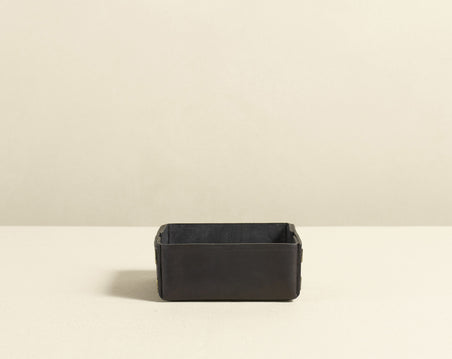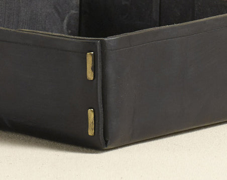 Simplicity of design, the timelessness of supple leather, the marks of craft perfected over decades. The leather is carefully sourced in Italy then fashioned into shape, finished with brass staples hammered by hand. The trays are objects of purpose and intention—envisioned to frame valuables and objects in a way that elevates and inspires. Available in four sizes. Sold individually.