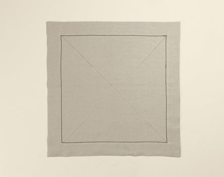 Strong, smooth, and lustrous, these Irish linen napkins by Peter Speliopoulos feature delicate black hem-stitching done by hand. Their grace and softness belies their utility as an object of use and reuse. Available in four colors with coordinated stitching.
