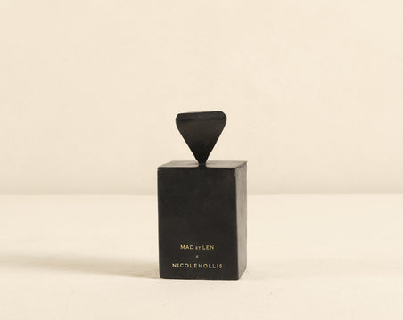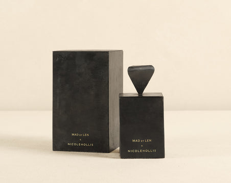 From this exclusive collaboration between the NICOLEHOLLIS Collection and Mad et Len comes a scent designed to evoke the ambience of an atelier—radiating calm, focus, and harmony. Blue Outrenoir has a top note of fresh cardamom, opening up to a heart note of floral ylang ylang, anchored in warm vetiver and exotic sandalwood. Contained in a square iron vessel with a custom totem lid. Available in two sizes.