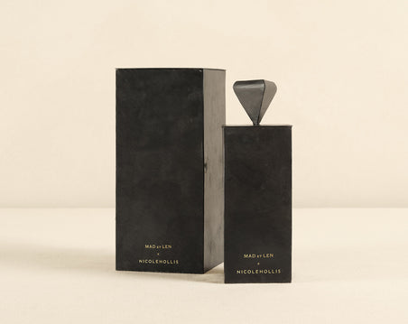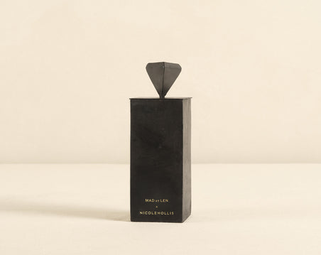 From this exclusive collaboration between the NICOLEHOLLIS Collection and MAD et LEN comes a scent designed to evoke the ambience of an atelier—radiating calm, focus, and harmony. Bleu Outrenoir has a top note of fresh cardamom, opening up to a heart note of floral ylang ylang, anchored in warm vetiver and exotic sandalwood. Contained in a square iron vessel with a custom totem lid. Available in two sizes.