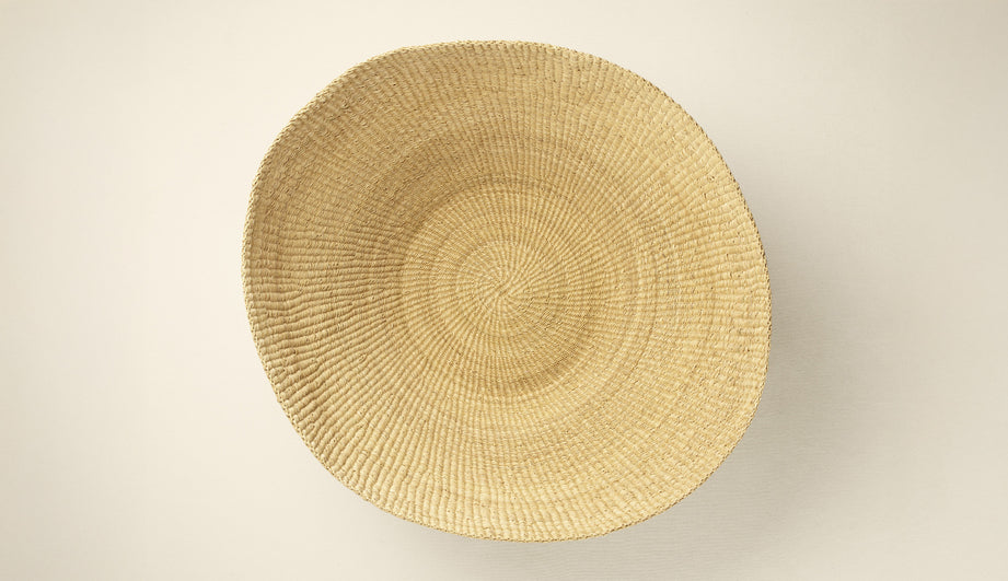 Each basket from The Baba Tree Basket Company arrives rolled inviting your hand to create its final form—a subtle gesture of collaboration between maker and user. Available in two colors. See Additional Details for shaping instructions.